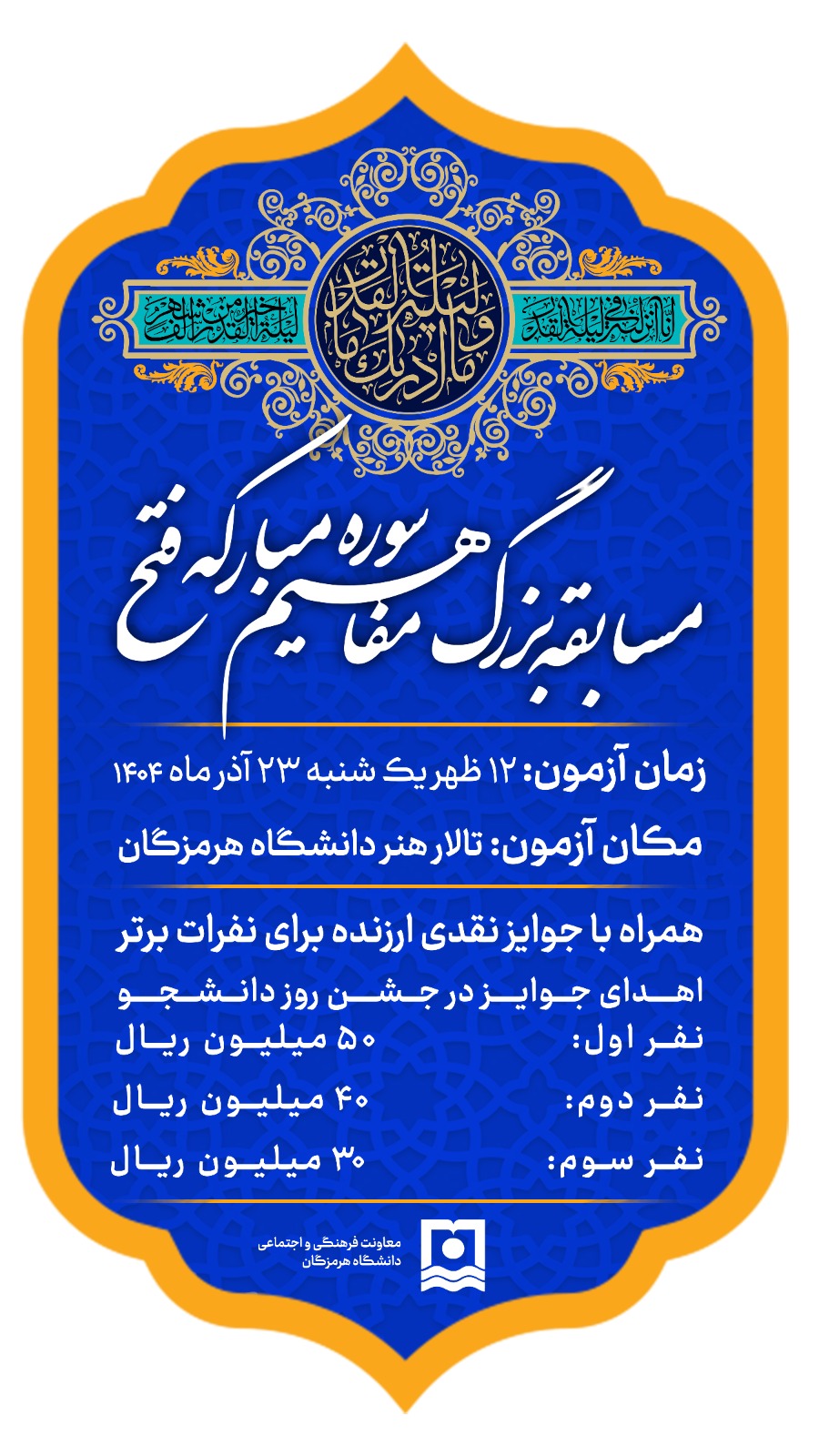 فراخوان برگزاری «مسابقه بزرگ مفاهیم سوره مبارکه فتح» در دانشگاه هرمزگان