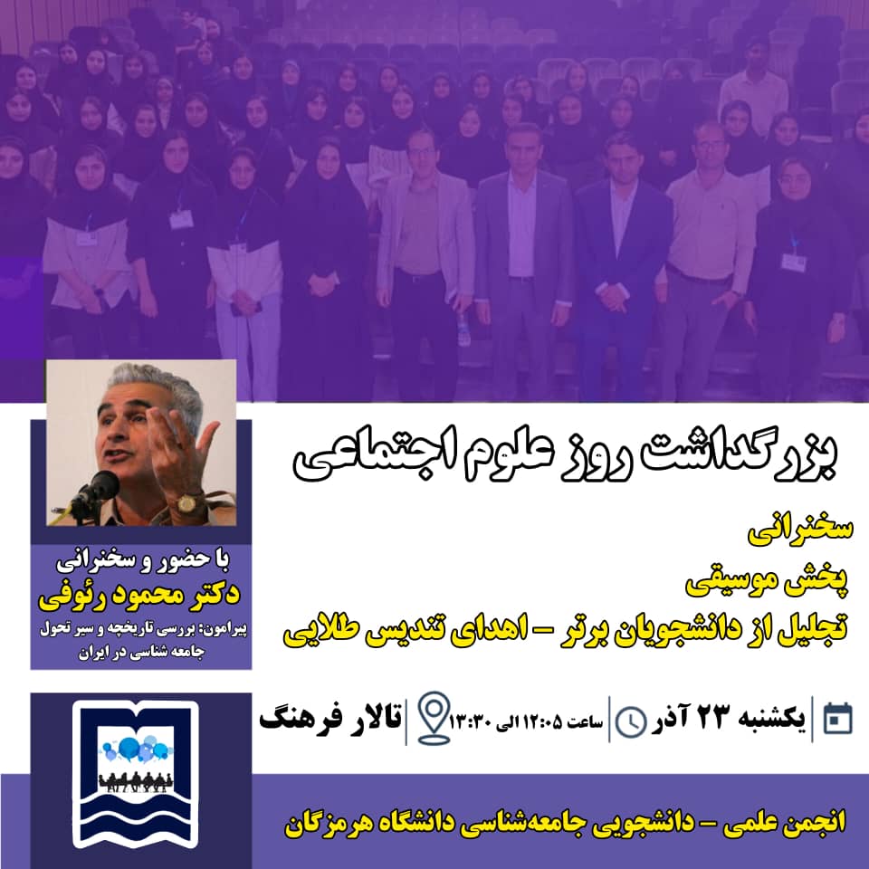 فراخوان بزرگداشت باشکوه روز علوم اجتماعی در دانشگاه هرمزگان با حضور دکتر محمود رئوفی