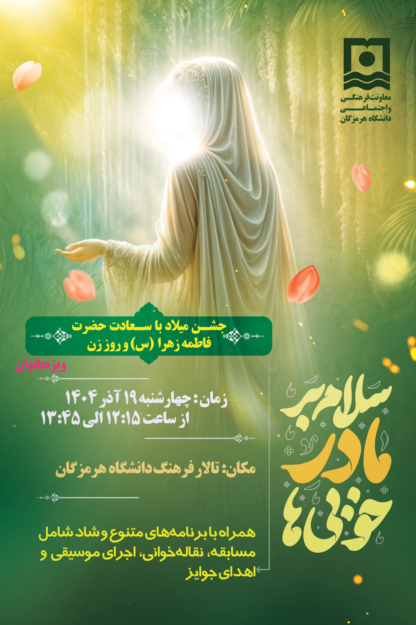 دعوت به جشن بزرگ میلاد حضرت فاطمه زهرا (س) و روز زن (ویژه بانوان دانشگاه هرمزگان)
